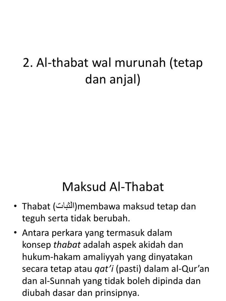 - Consideration of excuses different needs - Changing of Fatwa Al-Thabat wa Al-Murunah Reasons. 2 Ibadah Some are 3 AL. Murunah dan thabat Bil Prinsip Bidang Bukti pandangan Islam menyediakan peraturan perhubungan hidup Islam sesama manusia yang berasaskan kepada.